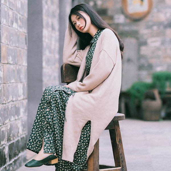 07 再多的修饰词语也比不过针织带来的柔情几许。甚至不需要任何修饰,针织就懂得如何拿捏温婉的尺度,慢慢渗透到生活中。中长款的针织开衫,内搭一条碎花连衣裙,及踝的长度迷人的风情。