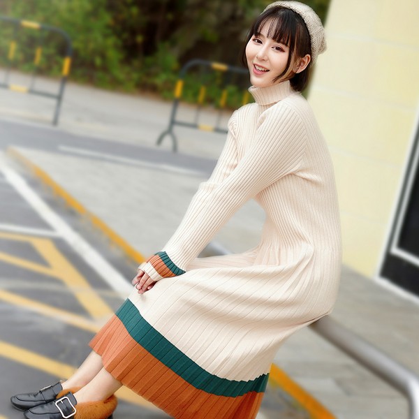 04 大大方方的连衣裙,有基础色就好,可以搭配很多的款式,比如翻领的毛呢大衣,比如印花的短款。如果想要单穿,那就来点撞色,姜黄和湖绿,别致的色彩在米白色的对比下格外抢眼。