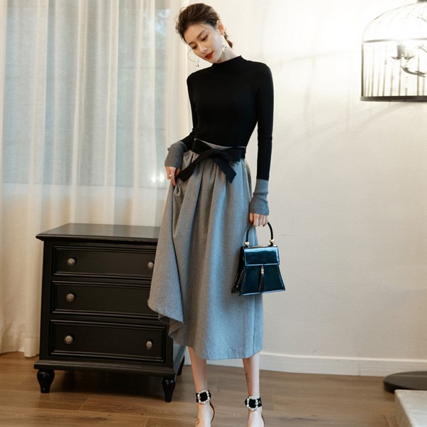 05 懒得动脑筋又不想被爸妈唠叨,那就来件套装吧,越简单越可以向大方靠拢。上半身修身效果很好,虽然黑色沉闷却充满女人味,下半身的大裙摆饱含裙角飞扬的美好想象,浅灰色在对比下效果更加明显。