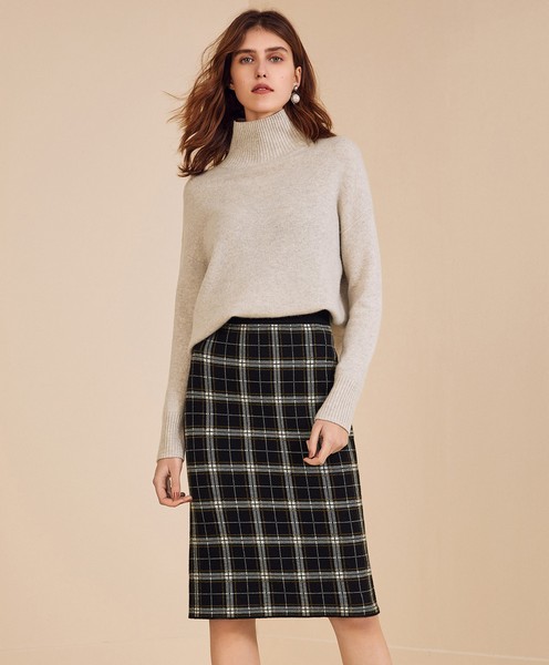 10 由黑底细条纹构成的苏格兰格纹好穿易搭也很显质感,针织面料打造舒适贴身,高腰及膝铅笔裙型能展现好身材凸显典雅淑女范,利落版型与素雅色调以干练强势纵横职场。