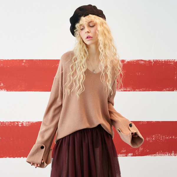 V领毛衣单穿性感又慵懒,与大耳环、细项链构成多重显脸小的效果,宽松毛衣显瘦遮肉,还能减少胸大肩宽背厚的烦恼,衣摆扎在高腰线中,裤筒藏高跟,多项短板都被补齐,而且简简单单就很美。