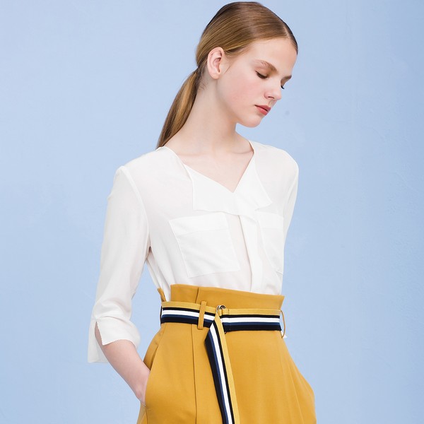 07 交叠V领不会太多露肤,完美包裹出身材曲线,包容性强的款式,谁穿都好看,温柔奶白色女神范十足,用不对称一粒扣连接代替了繁琐的一排纽扣,简洁又高雅大方,离精英范很近很近了。