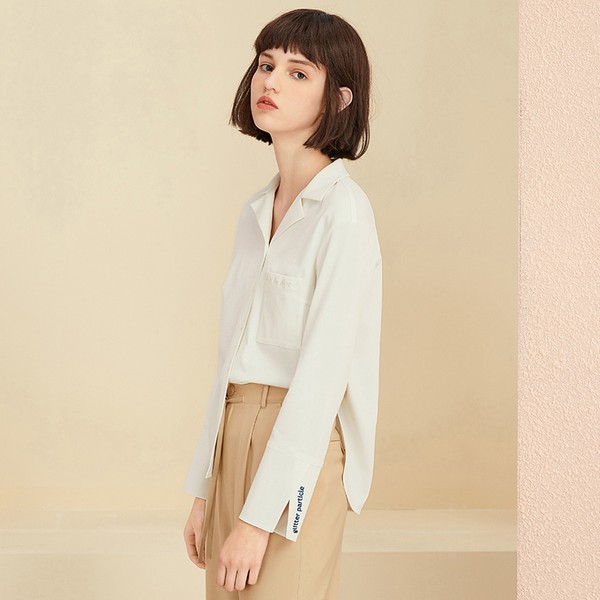 08 简约时尚的睡衣风翻领衬衫,领部一个细节就能带来慵懒与复古风情,小露锁骨可爱迷人,袖口开叉加字母小点缀显瘦又别致,自带随性清爽的度假氛围,用作休闲装时髦不费力,加入通勤造型等于注入了新鲜活力。