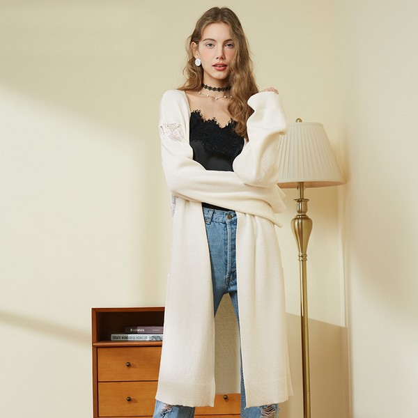 超长款针织开衫内搭T恤牛仔裤就是不出错的选择,九分裤脚露脚踝对接乐福鞋,造型舒适随性。