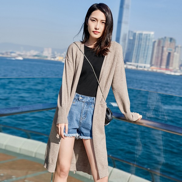 03 卡其色开衫具有大地般的沉稳和中性气质,而且在搭配方面也几乎无所不能,带有混色效果不会单调质感丰厚,后腰系带加上两侧开叉打造好比例穿着更自信,而长款是气场的最佳展示舞台。