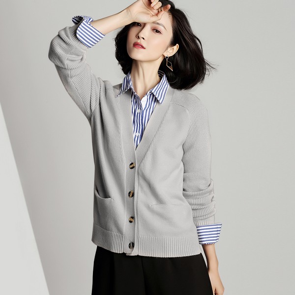 07 每一件开衫都自带N个搭配方案,灰色开衫中性高级非常百搭,能压得住很多跳跃的花色,严谨干练的蓝色条纹与温润儒雅的灰色开衫组合,正式休闲皆宜,清爽干练呼之欲出。
