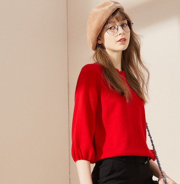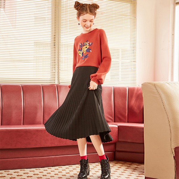 06 毛衣能持续贯穿三季,花样繁多是最应时应景的单品,这件有着花开刺绣的灯笼袖毛衣,暗调橘红没有了大红色的压迫感,适合低调的你,寓意也十分吉祥,更重要的是和大多数秋冬色彩都能相配,同时又带着暖暖的春意与阳光气息。
