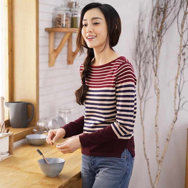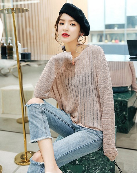 04 蝙蝠袖的慵懒需要宽条纹来成全,大块的色彩碰撞最好选择差别比较大的,这样才有视觉冲击感。超薄的材质,款式的随性,有隐约的诱惑,春日阳光明媚的时候最适合这样休闲自然的了。