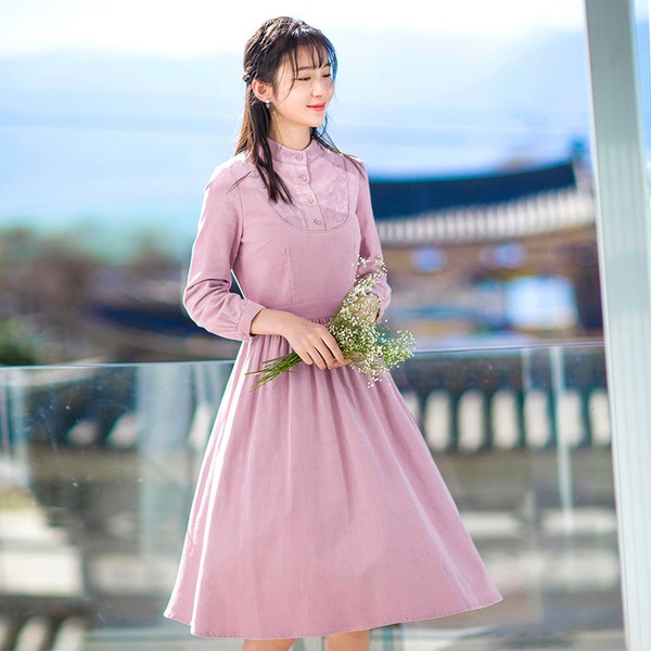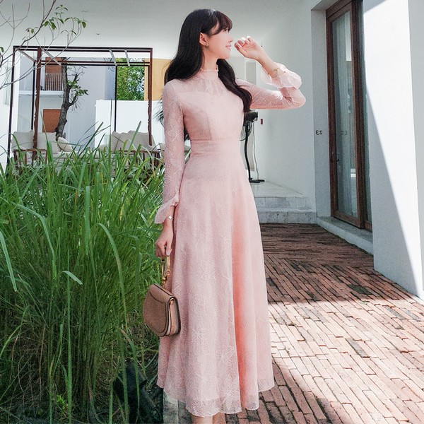 06 没有哪一种款式能比长裙更能展现温柔如水的感觉。虽然粉色未必一定要是温柔的,但我们总想着在遇见浪漫的时候,自己不那么煞风景。喇叭袖的长度恰到好处不会显得累赘。