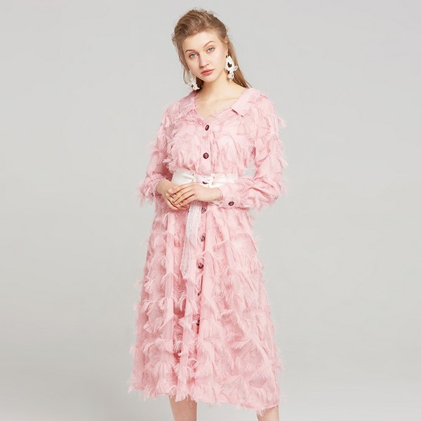 02 纯白的长裙不管是百褶还是伞裙,都可以和粉色的外套碰撞出火花。你会喜欢门襟的线条处理,如流水一般还能打造的恰到好处。流苏点缀在所有细节中,长度恰到好处,灵动而饱满。