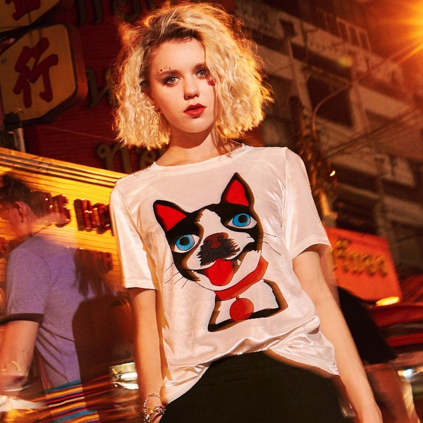 04 随着狗年到来,沾上汪元素的单品都成了抢手货,品牌们也都不遗余力各自发挥想象力,这件的狗狗图案用色堪称浓墨重彩,一出场必抓眼球,加上光滑闪亮的丝绒面料,潮流感直线上升。