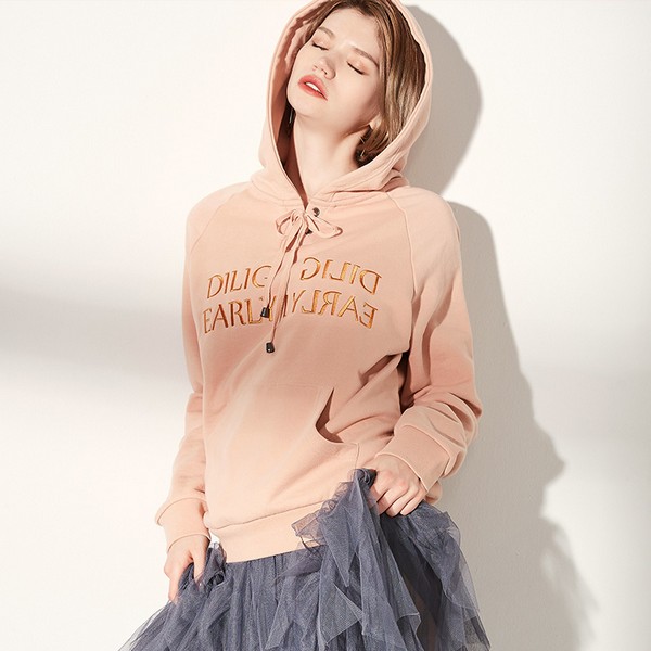 09 连帽+气孔绑带唤醒少女心,胸前字母刺绣点缀提升质感凸显潮流个性,气质裸粉色适合人群广泛,也更易穿出不俗的时髦品味,配仙女裙整身色调温柔又高级,材质对比让造型胜出。