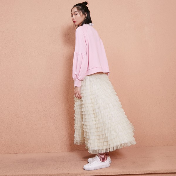 09 虽然同样是蛋糕裙,但三层重叠和多层重叠出来的效果完全不一样。上一款的甜美中还带着张扬,而这一款的甜美就是实打实的甜美,容不得更改,就是要让你一眼就看中半身裙的特别之处。