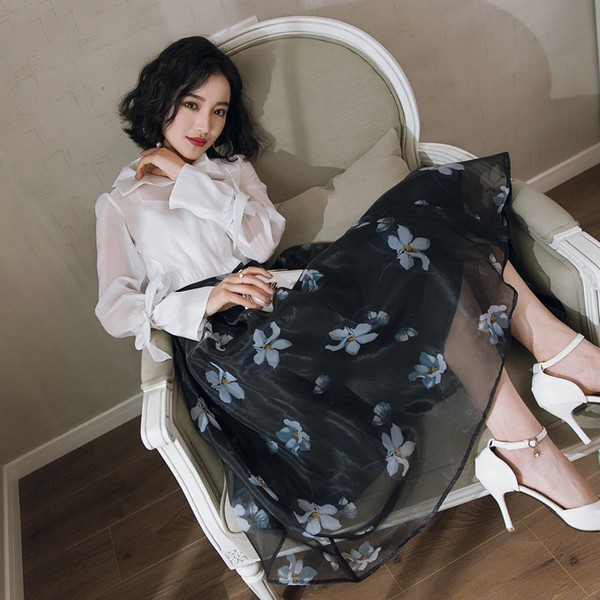 08 春天不是没有白色的花朵,只是在姹紫嫣红中不那么起眼,远远比不上裙摆上的妩媚。网纱重叠的半身裙,休闲中带有学生党的青春又带有成熟女人的知性,大约只有白衬衫才能让印花肆无忌惮。