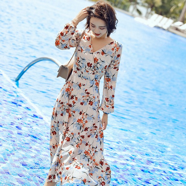 05 任何绚烂的过往都可以拿出来回味,所以春光虽然短暂,但有了作陪衬,我们仍然可以经常回忆。裙摆上的花朵不算精致,色彩透露出一点忧郁的神色,却并不妨碍连衣裙对花枝招展的表达。