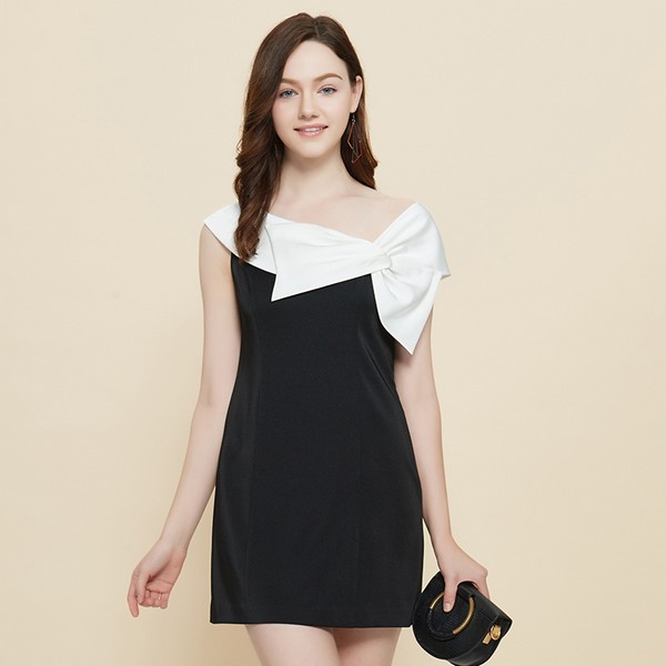 01 精美礼服裙,采用两色相撞,亮点锁定在上半身,褶皱蝴蝶结让衣领设计感突出,优雅可爱风格鲜明,同时美化肩颈线条,清新妆发与单只耳饰都可以作为加分项,再配一个手拿包就很高雅,完美应对正式场合。