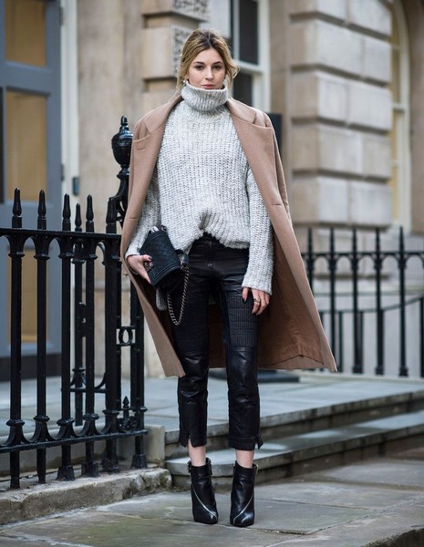 毛衣++短靴+大衣,这个由基础款组合成的套路十分通用,任由单品替换细节变化都能在秋冬被高频使用。