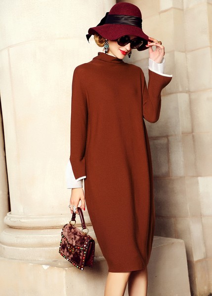 09 针织裙融入流行元素加上特色剪裁表达时髦个性,喇叭长袖、至膝长度端庄大方,不规则裙摆通过摆模糊边界显腿长,天然面料,纵向坑条与垂坠感都能有效避免横向发展,加上外套助攻时显高瘦效果尤甚。