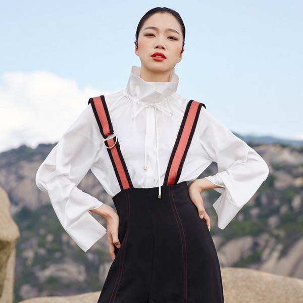 07 精选宫廷风元素的白衬衫复古却不繁杂,系带收束高领可调节宽窄,褶皱花边衬托高贵优雅气质,另一个设计点在袖口,一粒纽扣固定形成别致的立体形状,举手投足间倍显潇洒风度,作内搭时从领部或袖口露出那些有趣的边边来,给沉闷的秋冬造型添彩无限。