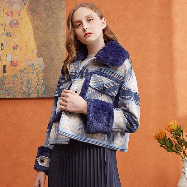 04 既然无法远离格纹的诱惑,那么不如尝试不同的格纹,好让自己格外心满意足。蓝色的经典,在于青春在于百搭,就算有毛领的拼接也不会显得累赘,倒是让冬天的色彩丰富起来,谁也替代不了。