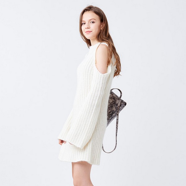 09 冬天的露肩一定不仅仅是为了性感,也许只是内心的一点小幻想,想要让夏天留的更久一点。用纯白就好,任何点缀都不要,才能凸显露肩的独一无二,再次说明了针织裙在秋冬的独特地位。