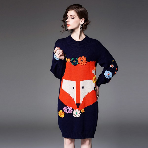 04 保持一点童心未泯是针织裙的小确幸,把内心的欢喜悄悄展露。撞色形成了俏皮的小狐狸,呆萌可爱的造型再点缀几朵立体花朵,让饱满起来,撞色撞出了新的境界,很有特色的小可爱。