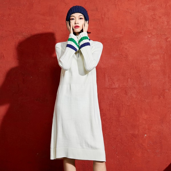 01 针织连衣裙是针织中的一大分类,虽然不及开衫那样能够及时的掌控温度的增与减,但应付季节的信心还是有的。略显宽松的款式,点缀着系带设计,纯色就变得不那么单调了,够青春减龄也够休闲惬意。