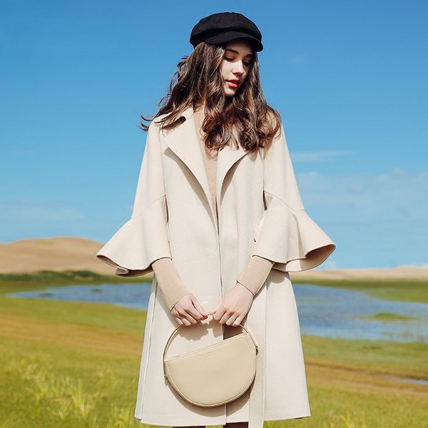 02 这件浴袍式大衣很有辨识度,圆滑的翻领尤显温婉,荷叶式宽腰封设计感突出,扣上时就像裙摆式上衣+开叉半裙套装,让强势的大衣多了些淑女气质,打造独立而有主见的个性风格。