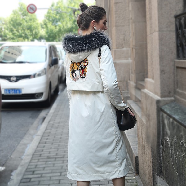 08 这件正面是较修身的派克大衣,背面看起来就像是一套,假两件式的层次感凸显纤细腰身,还有老虎刺绣图案坐镇,将霸气与软萌综合到一起,今冬的潮流萌主上线。