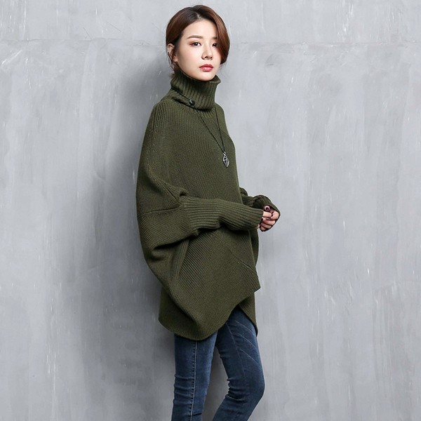 05 慵懒和宽松就像双生花,时常给我们意外的惊喜。蝙蝠袖大约是宽松中最时尚的表达,把线条和曲线美化为无形的秘密武器。军绿色的高领蝙蝠衫,虽然色彩不够明亮,但同样具有青春气息。