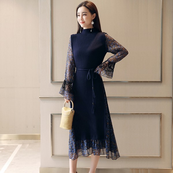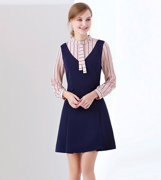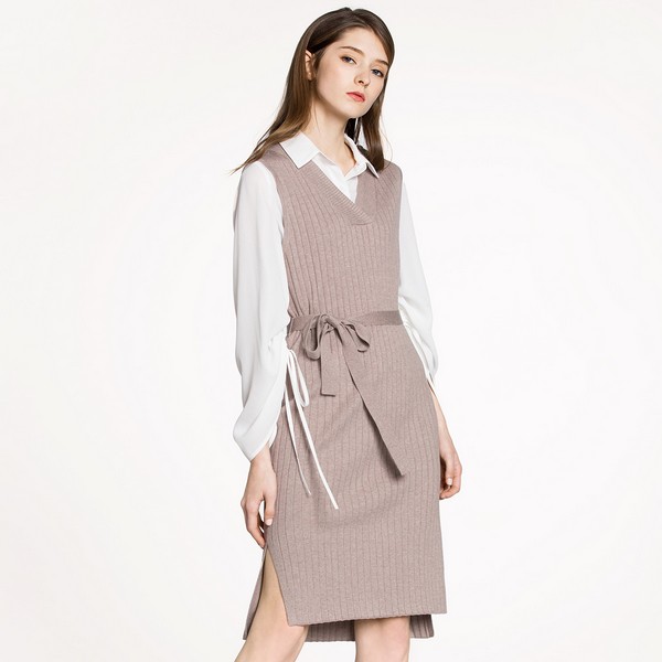 01 吊带裙加针织衫,假两件设计增加了连衣裙的层次感,色彩可以增加学院风的清甜气质。喇叭衣袖和裙身的色彩相互呼应,同时照顾裙摆的情绪,减龄卖萌却不算装嫩。