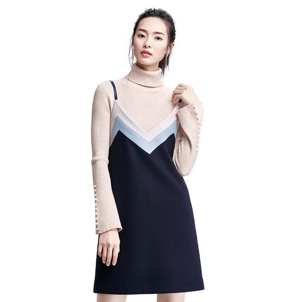 02 和上一件相似的视觉效果。但真两件的搭配就比假两件来得更活泛一点,更多的搭配有助于给你更多选择。吊带,有夏天的灵动感,内搭高领毛衣增添冬天的厚重温和。