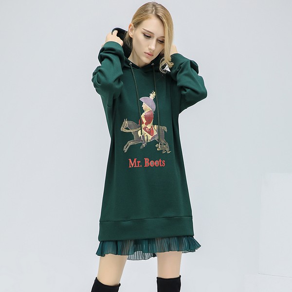 卫衣连衣裙休闲与飘逸的完美结合网纱拼接,百褶设计和动物印花休闲风尽情展现!