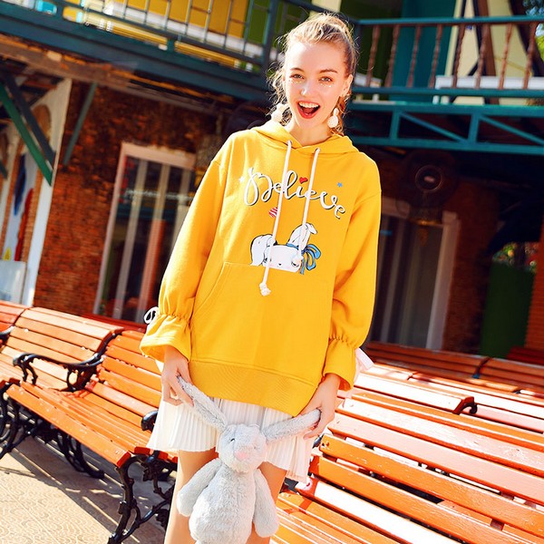 05 纯色的卫衣连衣裙更符合卫衣进化的过程,只是加长了而已,并不会带来太多质感的改变。卡通印花的加入充满童趣,青春减龄要的就是这点随意自在,不分年龄段的天真才是最好的释放。