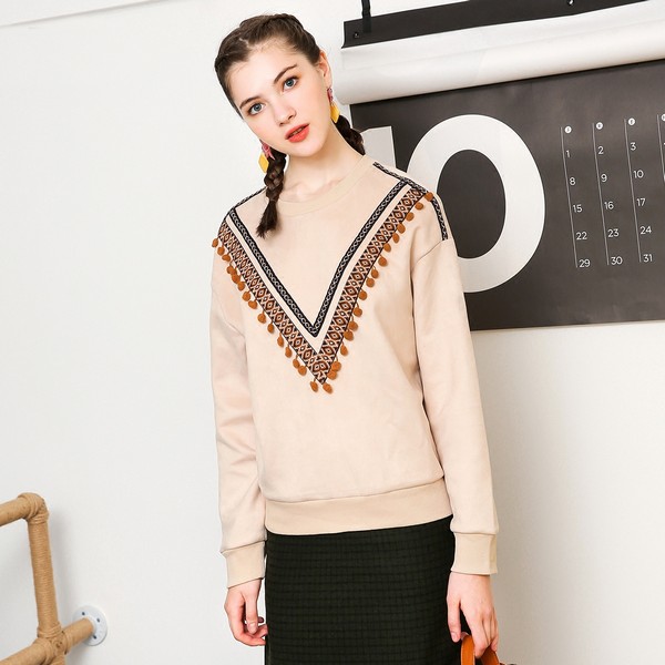 08 装饰V领虽为造型而设,但减龄显瘦的效果丝毫不差,不用担心走光,借助大可加入更多新鲜元素,这件就有民族风花纹和流苏小球装饰,细节感满满,淑女风浓浓。