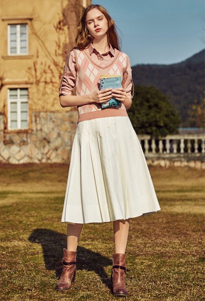 11 换个茱萸粉菱格纹,英伦风淑女感扑面而来,米白灰粉卡其交织而成,搭配选品以此延伸,衬衫百褶玛丽珍/牛津鞋自然成套,或可再加一顶画家/贝雷帽,是电影中的经典画面,也是现实里勤耕书海的文艺先锋。