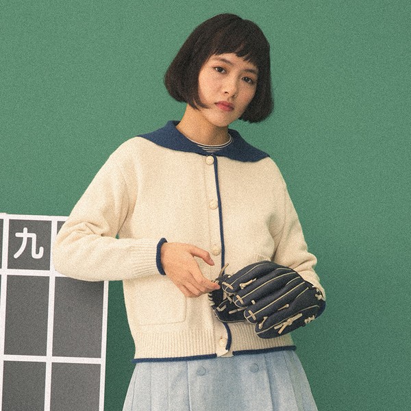 01 春天的绿色是鲜活的,透露着生命的意义,但针织开衫的绿色却可以稍微深邃一点,保持一个概念就可以不必完全抄袭季节。线条的勾描带着撞色的俏皮为极简的针织开衫增加几分看点。