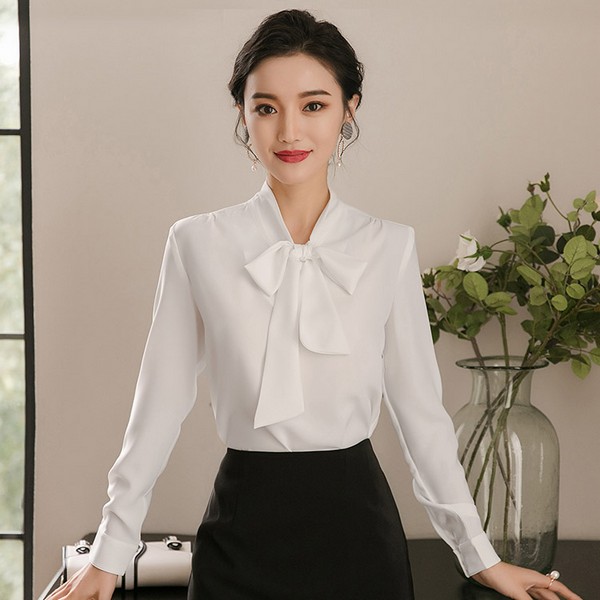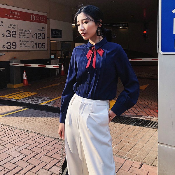 02 OL风的白衬衫有了这个结就能在显干练的同时展现优雅女人味,点缀在最显眼提气的位置,改善气色和代替颈饰,配简洁利落的下装就很大方,飘带自然垂下展现率性潇洒的一面。