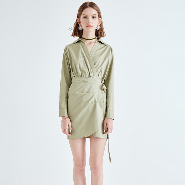 08 围裹式连衣裙设计出挑显性感脱俗,代表着自在优雅的法式魅力,上有舒适显瘦的交叉V领,下有浪漫娇俏的花苞式裙摆,中间绑带收腰修饰比例,饱和度低的豆绿色,不仅亲和力强易驾驭也很显质感。
