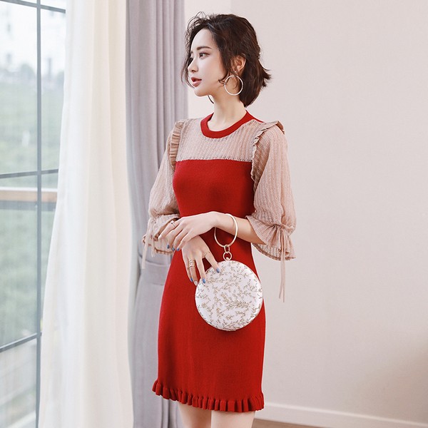 08 简单的直筒裙绝对有着让你意想不到的惊喜,虽然针织很能凸显身材,但直筒往往也能平衡性感。撞色荷叶边形成了V字领,和圆领的好好合作,让我们对V字领的修饰效果有了更深的体会。