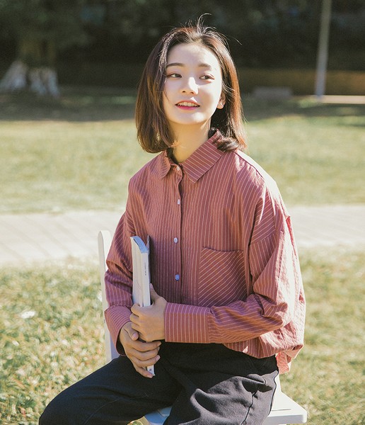04 条纹衬衫适合和纯色的单品叠穿,除了黑白的条纹衬衫,几乎所有的条纹衬衫都不适合跟杂色的单品搭,包括红白的在内,本来就已经够复杂了,再不叠穿的利落些,就该不讨喜了。