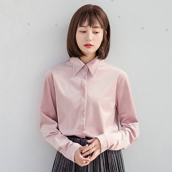 02 金丝绒衬衫适合和金丝绒的单品叠穿,由于面料的与众不同,金丝绒衬衫想要得不费力气,只能寻求同类,外穿一件灰色的金丝绒单品,奢华的感觉不动声色就流露出来了。