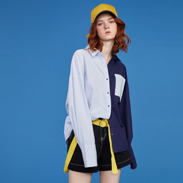 06 撞色衬衫适合和个性的单品叠穿,大面积的撞色本来就是个性的象征了,如果搭配一件平庸的俗物,难免会出现不适感,倒不如从里到外都特立独行些,起码能达到提升回头率的效果。