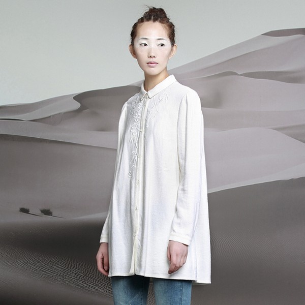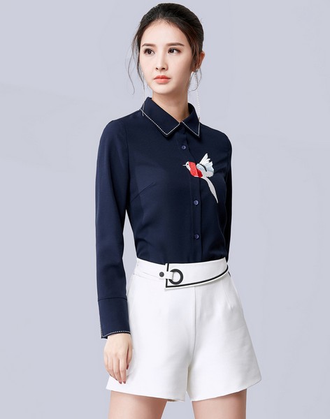 07 刺绣衬衫适合和偏正式的单品叠穿,当然,不是所有刺绣衬衫都适合,得本身也比较正式才行,藏蓝色的修身款衬衫就不错,满满的中国风,想休闲都休闲不起来,知性的女人一定不能错过。
