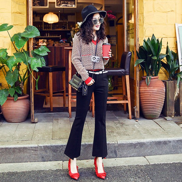 07 刚刚好,不夸张,把喇叭裤时尚雕琢得如一出蝶舞正在悄然登场,高腰全长盖及脚面的摇荡,拉长腿型满满的舞台时效,高挑纤细复古有如画中来,惊鸿一曲的飘逸仙气,当然美人如斯。