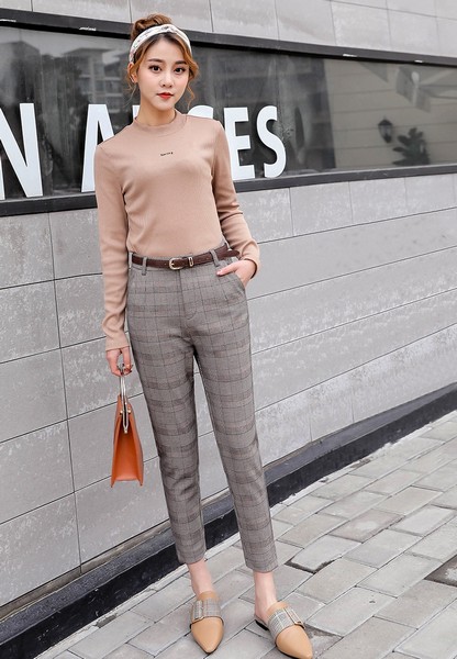 03 九分裤显腿长,这早已不是啥秘密,但前提得是中高腰,尤其是格纹浪漫,带着天生贵气,当然无需其他花哨渲染,就能置流行为过眼云烟,简简单单地玩儿转大方得体,俏皮清丽。