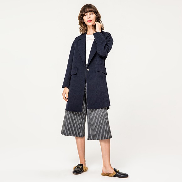 07 如果灰色风衣是禁欲风,藏蓝色风衣就是典型的性冷淡风了,配合着板正到不能更板正的版型,棱角简直不要太分明,一看就不是软萌妹子的专属,没点儿大姐头的架势还真不一定能撑得起来。