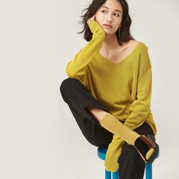 03 纯色的针织衫毋庸置疑属于百搭款,只要不是特别难搞的元素,都能完美消化,再加上本来就是和季节契合度非常高的姜黄,怎么穿都不会显得不合时宜,相反,满满的温暖感。