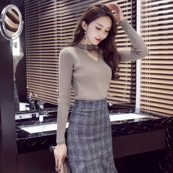 什么样的脸型适合什么样的领型,是日常搭配的基本常识,在此,不做重点赘述,落实到具体情况,应该可以解读为,圆领适合尖脸、U领适合四方脸、低领适合长脸……V领适合所有的大脸,换言之,也就是传说中的瘦脸神器。