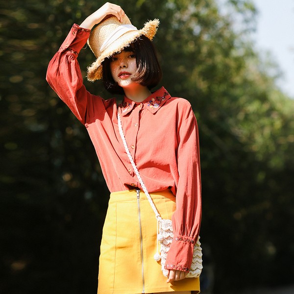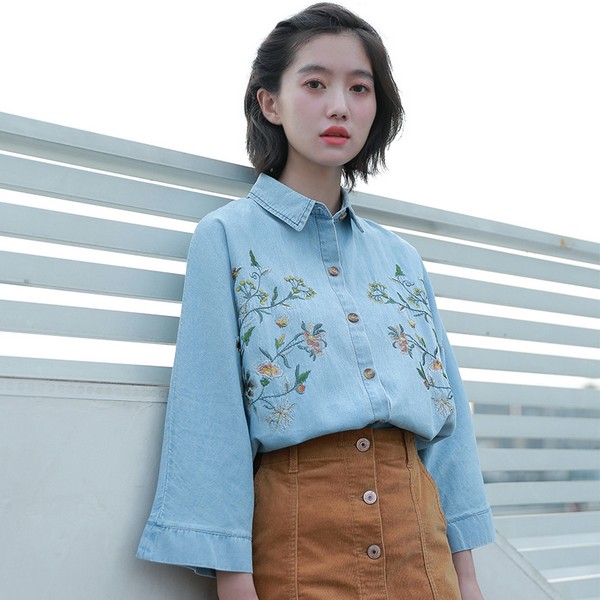 04 色彩是传统的,只是水洗磨白让牛仔看起来更素雅一点,更何况刺绣的色彩也是同样素雅。喇叭袖的顺其自然让牛仔在洒脱中找到一点小清新的质感,略显文艺,但更多彰显了学院风。